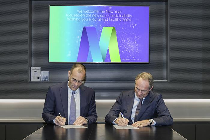 Ο Γενικός Διευθυντής της ΕΤΕπ και Head of Operations Jean-Christophe Laloux, και ο Χρήστος Γαβαλάς, Chief Treasury & IR Officer and Executive Board Member της MYTILINEOS, υπέγραψαν τη δανειακή σύμβαση που θα έχει διάρκεια 10 ετών, στην Αθήνα στις 21 Δεκεμβρίου 2023. Αυτή η νέα χρηματοδοτική συμφωνία αποτελεί μέρος του εξειδικευμένου πακέτου υποστήριξης της ΕΤΕπ για το RΕPowerEU, το φιλόδοξο σχέδιο της Ε.Ε. για τη μείωση της εξάρτησης από τις εισαγωγές ορυκτών καυσίμων, την επιτάχυνση της «πράσινης» μετάβασης και την ενίσχυση των επενδύσεων με σκοπό την επίτευξη μηδενικών εκπομπών άνθρακα έως το 2050.