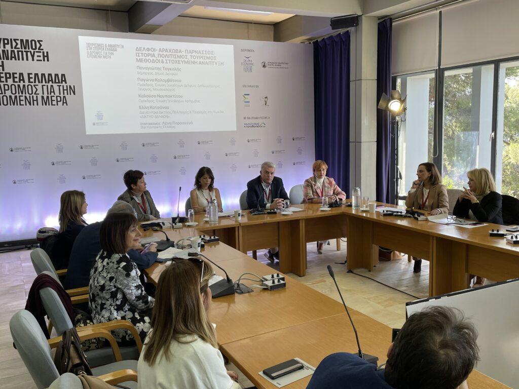 Στη θεματική όπου μίλησε ο Δήμαρχος Δελφών συμμετείχαν επίσης η κ. Παγώνα Κολομβότσου, Πρόεδρος, Ένωση Ξενοδόχων Δελφών, Διπλωματούχος Ξεναγός, Μουσειολόγος, η κ. Καλούσα Ναυπακτίτου, Πρόεδρος, Ένωση Ξενοδόχων Αράχωβας, η κ. Ελλη Κοτσάνου, Διευθύντρια Δικτύου, Πολιτισμός & Τουρισμός στη Φωκίδα, «ΔΙΚΤΥΟ ΔΕΛΦΩΝ», ενώ το συντονισμό της συζήτησης έκανε η Δημοσιογράφος του Star Κεντρικής Ελλάδας κ. Λένα Παρασκευά.