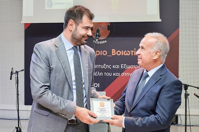Ακολούθως, το Διοικητικό Συμβούλιο του Επιμελητήριου Βοιωτίας τίμησε τον προσκεκλημένο, Κυβερνητικό Εκπρόσωπο & Υφυπουργό στον Πρωθυπουργο κ. Παύλο Μαρινάκη, «για την προσφορά του στο επιχειρείν και στο δημόσιο βίο της χώρας μας».
