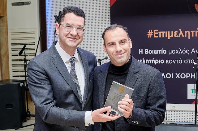 - τον Βοιωτό επιχειρηματία, κ. Σάκη Κατσέλη, για την προσφορά του στο επιχειρείν της χώρας. Την βράβευση έκανε ο Κυβερνητικός Εκπρόσωπος & Υφυπουργός στον Πρωθυπουργό, κ. Παύλος Μαρινάκης.
