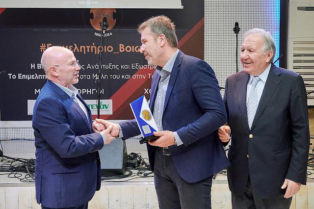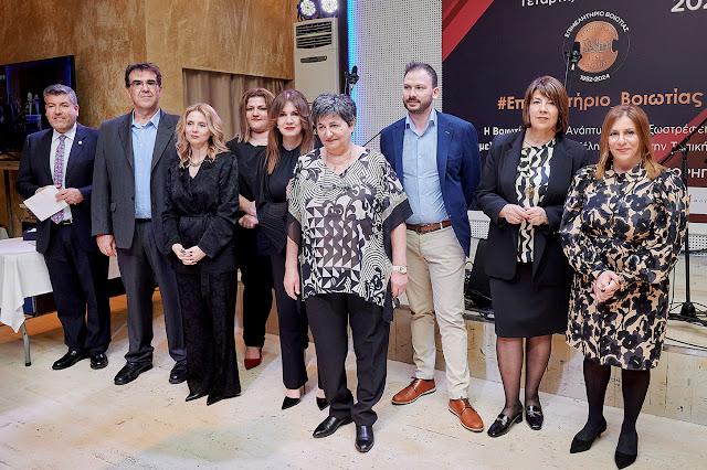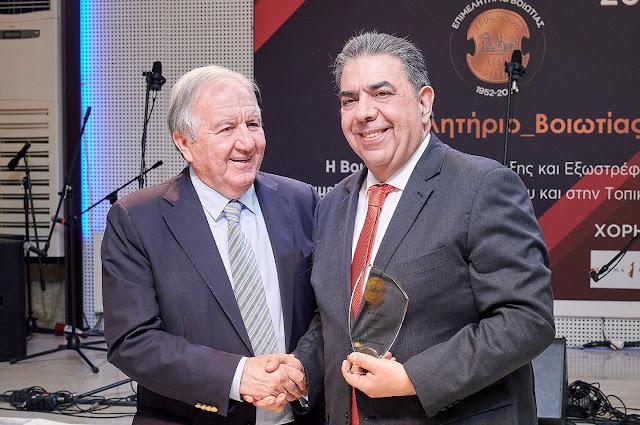 Στην συνέχεια, το Επιμελητήριο Βοιωτίας, ενισχύοντας τους δεσμούς συνεργασίας με τις τοπικές κοινωνίες και τα πρόσωπα που συνεισφέρουν ποικιλοτρόπως σε αυτή, βράβευσε συμβολικά :