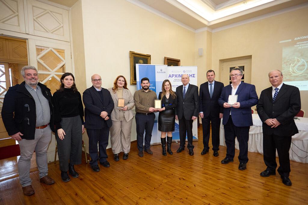 Ο Αντιπρόεδρος Δ.Σ. της ElvalHalcor, κ. Δημήτρης Κυριακόπουλος, μεταξύ άλλων τόνισε ότι: «Στην ElvalHalcor, επενδύουμε στην έρευνα και την ανάπτυξη καθώς και στην προηγμένη τεχνολογία, με στόχο να προσφέρουμε καινοτόμα προϊόντα που θα συμβάλλουν στη βελτίωση της ποιότητας ζωής της κοινωνίας μας, ανταποκρινόμενοι στο αίτημα για ένα βιώσιμο μέλλον. Έχοντας θέσει τη βιώσιμη ανάπτυξη ως στρατηγική επιλογή μας, με χαρά στηρίζουμε αυτή την προσπάθεια που συνδέει την επιχειρηματικότητα με την πανεπιστημιακή έρευνα και την καινοτομία, επιτυγχάνοντας συνέργειες που δημιουργούν και επιστρέφουν πραγματική αξία στην κοινωνία.» Ο κ. Κυριακόπουλος συνεχάρη όλους τους συμμετέχοντες για τις αξιέπαινες λύσεις που κατέθεσαν για την πρόληψη και αντιμετώπιση των φυσικών καταστροφών που πλήττουν ολοένα και συχνότερα τη χώρα μας αλλά και ολόκληρο τον κόσμο, ως αποτέλεσμα της κλιματικής αλλαγής, ενώ παράλληλα δήλωσε ότι: «Ο διαγωνισμός καινοτομίας του Κέντρου «ΑΡΧΙΜΗΔΗΣ» και του ΕΚΠΑ αποτελεί μία εξαιρετική πρωτοβουλία που δείχνει τον δρόμο πώς η εφαρμοσμένη έρευνα και η καινοτομία μπορούν να συμβάλλουν σε ένα καλύτερο μέλλον για όλους μας.»