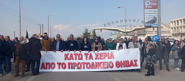 Σήμερα, Δευτέρα 19 Φεβρουαρίου 2024 πραγματοποιήθηκε η προγραμματισμένη κινητοποίηση των φορέων της Θήβας ενάντια στην υποβάθμιση του Πρωτοδικείου της στην Παλαιά Εθνική Οδό Αθηνών – Θήβας στο ύψος του Στρατοπέδου. Τη συγκέντρωση συμπλήρωσε ο συμβολικός αποκλεισμός της Παλαιάς Εθνικής Οδού για περισσότερο από μισή ώρα.