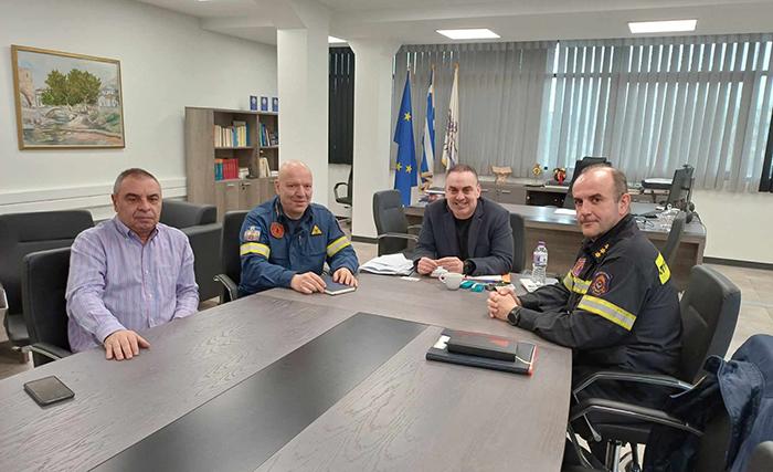 Τον Δήμαρχο Λεβαδέων Δημήτρη Καραμάνη επισκέφθηκαν σήμερα στο γραφείο του, ο Διοικητής Πυροσβεστικής Υπηρεσίας νομού Βοιωτίας, Πύραρχος κ. Κωνσταντίνος Πούλος και ο Διοικητής Πυροσβεστικής Υπηρεσίας Λιβαδειάς, Αντιπύραρχος κ. Χρυσοβαλάντης Ζαμπέτογλου στο πλαίσιο των εθιμοτυπικών επαφών του Δημάρχου με φορείς του Δήμου. Στη συνάντηση συμμετείχε και ο Γενικός Γραμματέας του Δήμου Λεβαδέων κ. Αθανάσιος Καραμάνης.