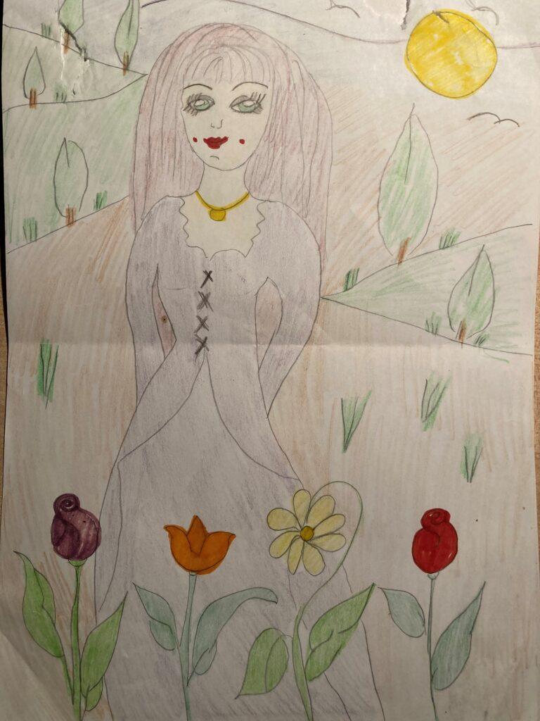 Η Κωνσταντίνα Κ. που σε λίγους μήνες αποφυλακίζεται, από την πρώτη στιγμή μας κέρδισε με την ευγένεια και την γλυκύτητα του χαρακτήρα της που φαίνεται στο ποίημα που έγραψε και το οποίο παραθέτουμε αυτούσιο, «Είμαι γυναίκα και μπορώ να ελπίζω/πως ότι πέρασα θα αλλάξει/των καιρών η ξαστεριά και αγάπη/των ανθρώπων που γνωρίζω/θα αναποδογυρίσει τις καρδιές των πιο σκληρών Αντρών/που με την πίκρα με κεράσαν/και με ταπείνωσαν σαν έρημο σκυλί/αντί στοργή και έρωτα να δώσουν/στο θάνατο με στείλαν μιαν αυγή». Μια ζωγραφιά-αντίδωρο μας έδωσε που την ξεκόλλησε τελευταία στιγμή από τον τοίχο του Δημοτικού Σχολείου. Γιατί ακόμη και μέσα σε ένα χώρο όπου η κοκεταρία δεν έχει λόγο ύπαρξης, η γοητεία μιας γυναίκας πάντα είναι το ζητούμενο έστω και ζωγραφισμένη.