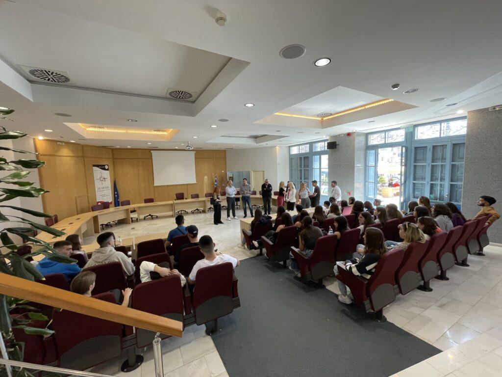 Ο Δήμαρχος Δελφών τους καλωσόρισε εκφράζοντας τη χαρά του για τη συνάντηση μαζί τους, τονίζοντας μεταξύ άλλων πως μέσω της σύμπραξης των δύο σχολείων ανοίγονται πολλοί δρόμοι συνεργασιών, οι οποίοι μπορούν να ξεπεράσουν το στενό πλαίσιο των σχολείων. Ο κ. Ταγκαλής τους έκανε μία σύντομη προφορική περιήγηση στα επισκέψιμα σημεία του Δήμου Δελφών, πολλά εκ των οποίων είναι ψηλά στις επιλογές των μαθητικών εκδρομών, ενώ επίσης τους ευχαρίστησε για την πρόσκλησή τους να επισκεφθεί το νησί της Σάμου, στο επόμενο ταξίδι που θα κάνει εκεί το Μουσικό Σχολείο Άμφισσας.