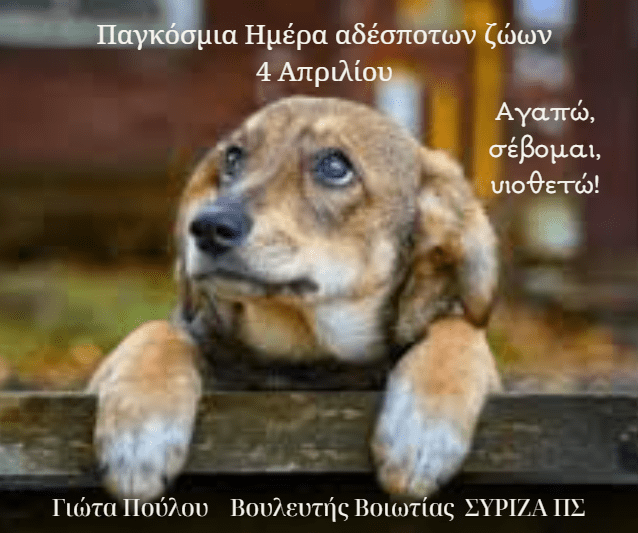 Η προστασία των αδέσποτων ζώων αποτελεί ένδειξη κοινωνικής ευαισθησίας, αλληλεγγύης και πολιτισμού για μια σύγχρονη κοινωνία που σέβεται κάθε μορφή ζωής!
