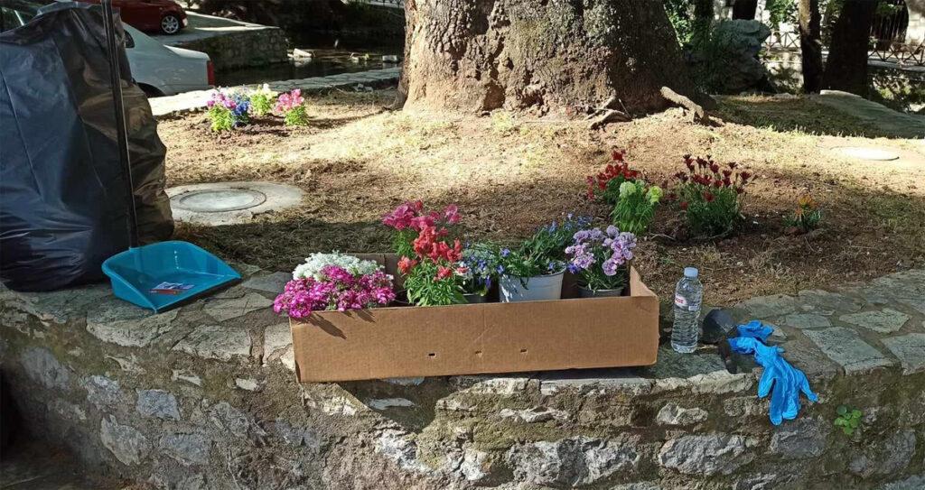 Επίσης έγινε καθαρισμός παρτεριών και φύτευση λουλουδιών και φυτών.