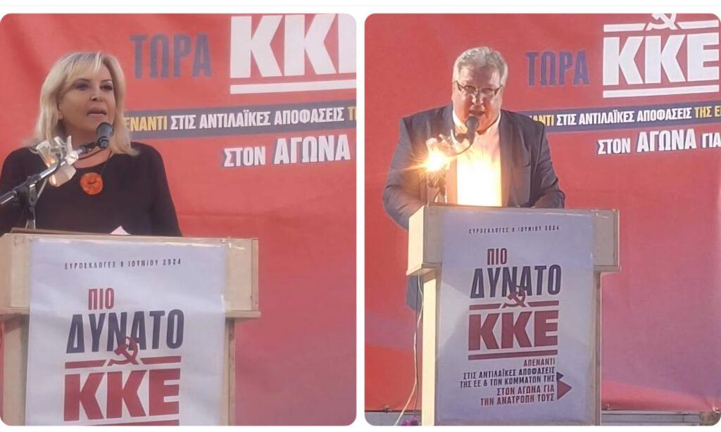 «Στις 10 Ιούνη» είπε «θα είναι εδώ ο “βραχνάς” της ακρίβειας, όσες επιστολές και να στείλει ο Μητσοτάκης στη Φον ντερ Λάιεν, θα είναι εδώ οι μισθοί που τελειώνουν στις 15 του μήνα, οι άδικοι φόροι, η εμπορευματοποίηση της υγείας και της παιδείας, θα είναι εδώ οι δύο ιμπεριαλιστικοί πόλεμοι που μαίνονται στην ευρύτερη περιοχή, με τη χώρα μας να βρίσκεται πολύ βαθιά μπλεγμένη, Θα είναι εδώ το ΝΑΤΟ, που, μπορεί οι ορκισμένοι υπηρέτες του, η ΝΔ, ο ΣΥΡΙΖΑ, το ΠΑΣΟΚ, να μας το παρουσιάζουν σαν δήθεν παράγοντα σταθερότητας και ειρηνικής συνύπαρξης των λαών, αλλά μόνο οι εξελίξεις των τελευταίων ημερών τους διαψεύδουν». Και συνέχισε λέγοντας πως «κανείς δεν μπορεί να πάει στις κάλπες στις 9 Ιούνη, χωρίς να έχει στο μυαλό του και τις επικίνδυνες διεθνείς εξελίξεις, τους δύο πολέμους που μαίνονται στην περιοχή μας και στους οποίους η ΕΕ πρωταγωνιστεί, με εμπλοκή και της χώρας μας.