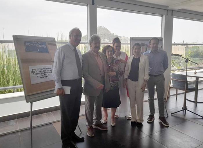Την Τετάρτη 5 Ιουνίου 2024 τα Μέλη του Συλλόγου του Μουσείου Γ. Δροσίνη πραγματοποίησαν μια εκδήλωση στο κέντρο της Αθήνας στο Ξενοδοχείο –Amalia Hotel-. Σκοπός της εκδήλωσης αυτής ήταν ο εορτασμός της εντοίχισης της πινακίδας στο σπίτι της Οδού Πατησίων και Πολυτεχνείου 2 μετά από πολυετή προσπάθεια, στο σημείο ακριβώς που βρισκόταν η τελευταία κατοικία του πρωτοπόρου και πολυπράγμων ποιητή μας Γ. Δροσίνη.