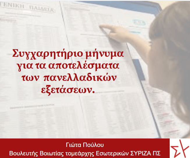 σας συγχαίρω θερμά για την επιτυχία σας στις πανελλαδικές εξετάσεις!