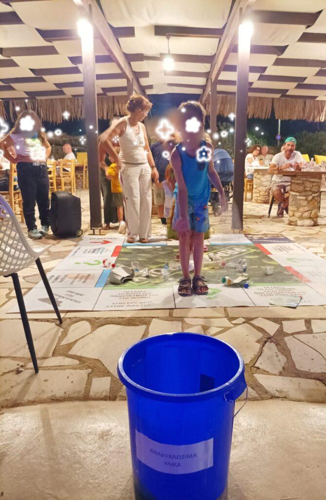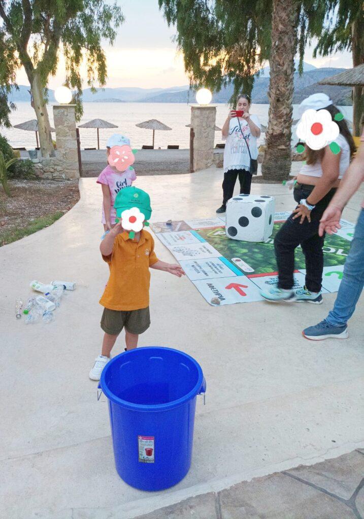 Ιδιαίτερα τα παιδιά συμμετείχαν με ενθουσιασμό στα βιωματικά παιχνίδια που πραγματοποιήθηκαν, ανακαλύπτοντας τον ‘’κρυμμένο θησαυρό των σκουπιδιών’’ και τρόπους με τους οποίους μπορούμε να διατηρήσουμε την πόλη αλλά και την παραλία μας ‘’πράσινη’’ και καθαρή ρίχνοντας όχι μόνο τη σωστή ζαριά αλλά και τα ‘’σκουπίδια’’ μας στο σωστό κάδο.