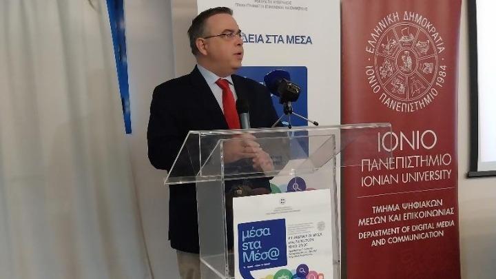 «Μέσα από την δράση, ‘Η Παιδεία στα Μέσα’, θέλουμε, η πολιτεία, η ακαδημαϊκή κοινότητα, οι ενώσεις των δημοσιογράφων και η εκπαιδευτική κοινότητα, να θωρακίσουμε και να εκπαιδεύσουμε την κοινωνία μας και κυρίως τα κομμάτια της κοινωνίας που είναι πιο ευάλωτα, να μπορούν να περιηγηθούν στον μεγάλο κόσμο της ψηφιακής τεχνολογίας και της ψηφιακής επέλασης». Αυτά τόνισε μεταξύ άλλων, ο γενικός γραμματέας Επικοινωνίας και Ενημέρωσης, Δημήτρης Γαλαμάτης, μιλώντας κατά την διάρκεια της ημερίδας με θέμα, «Η Παιδεία στα Μέσα», την οποία συνδιοργανώνουν στο Αργοστόλι της Κεφαλονιάς, η γενική γραμματεία Επικοινωνίας και Ενημέρωσης και το τμήμα Ψηφιακών Μέσων και Επικοινωνίας του Ιονίου Πανεπιστημίου.