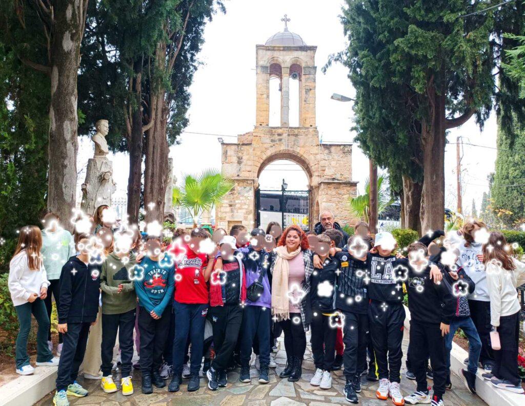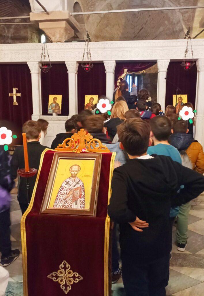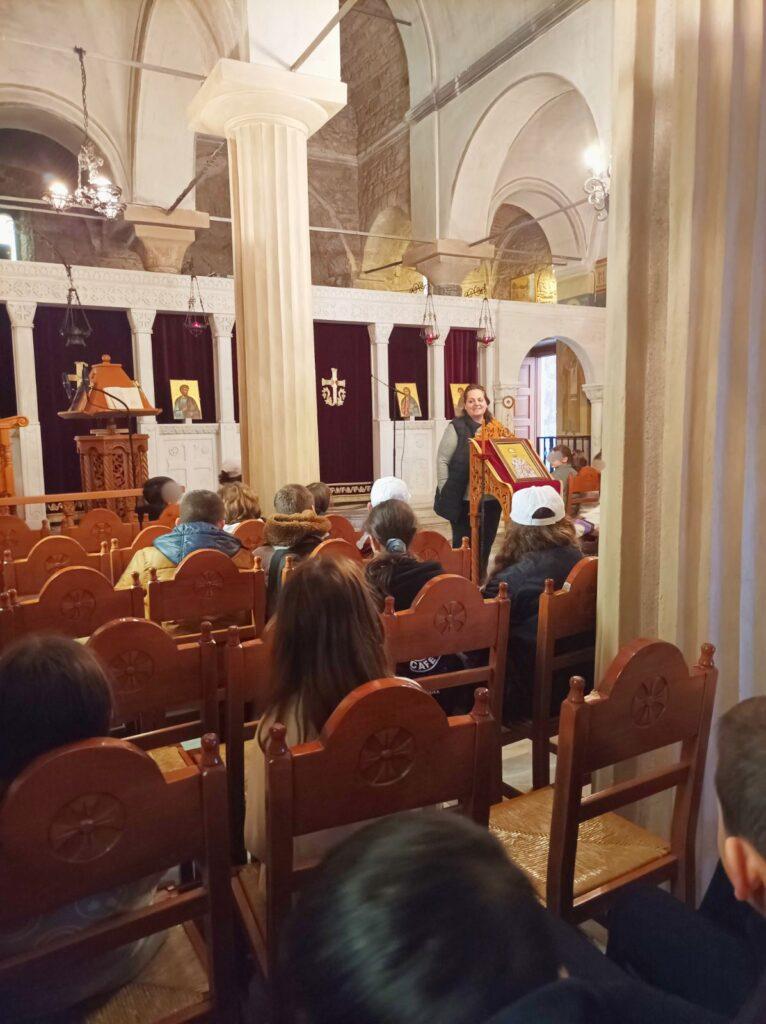 Στη συνέχεια, οι μαθητές και οι εκπαιδευτικοί τους, ξεναγήθηκαν στον Ιερό Ναό του Ευαγγελιστού Λουκά, έναν χώρο με μεγάλη θρησκευτική και ιστορική αξία, μαθαίνοντας λεπτομέρειες για τον βίο του Αγίου αλλά και ιστορικά στοιχεία για την κατασκευή του ναού.