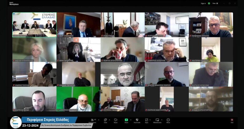 Κατεπείγουσα συνεδρίαση του Περιφερειακού Συμβουλίου Στερεάς Ελλάδας πραγματοποιήθηκε σήμερα Δευτέρα 23 Δεκεμβρίου 2024 με τη διαδικασία της τηλεδιάσκεψης, λόγω της επείγουσας ανάγκης λήψης απόφασης για την άρση απαγόρευσης της κυκλοφορίας επί της Εθνικής Οδού 48 Λιβαδειάς – Άμφισσας.