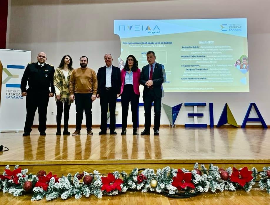 - Την διοργάνωση δια ζώσης ημερίδων επαγγελματικού προσανατολισμού σε έξι πόλεις της Περιφέρειας, με τη συμμετοχή περισσότερων από 1600 μαθητών από 30 λύκεια. Οι ημερίδες πραγματοποιήθηκαν σε Χαλκίδα (12/12), Άμφισσα (16/12), Λαμία (17/12), Καρπενήσι (18/12), Θήβα (19/12) και Λιβαδειά (20/12). Επιπλέον, περισσότερα από 72 απομακρυσμένα σχολεία είχαν τη δυνατότητα να παρακολουθήσουν τις εκδηλώσεις διαδικτυακά, μέσω συνδέσμου, επεκτείνοντας τον αντίκτυπο της δράσης σε όλη την περιφέρεια.