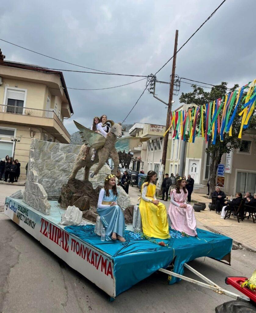 Μικροί και μεγάλοι καρναβαλιστές πλαισίωσαν την μεγάλη παρέλαση των αρμάτων με θέματα σατιρικά αλλά και εμπνευσμένα από την τοπική μυθολογία με τον Φρίξο και την Έλλη καθώς και τις Τρεις Χάριτες.