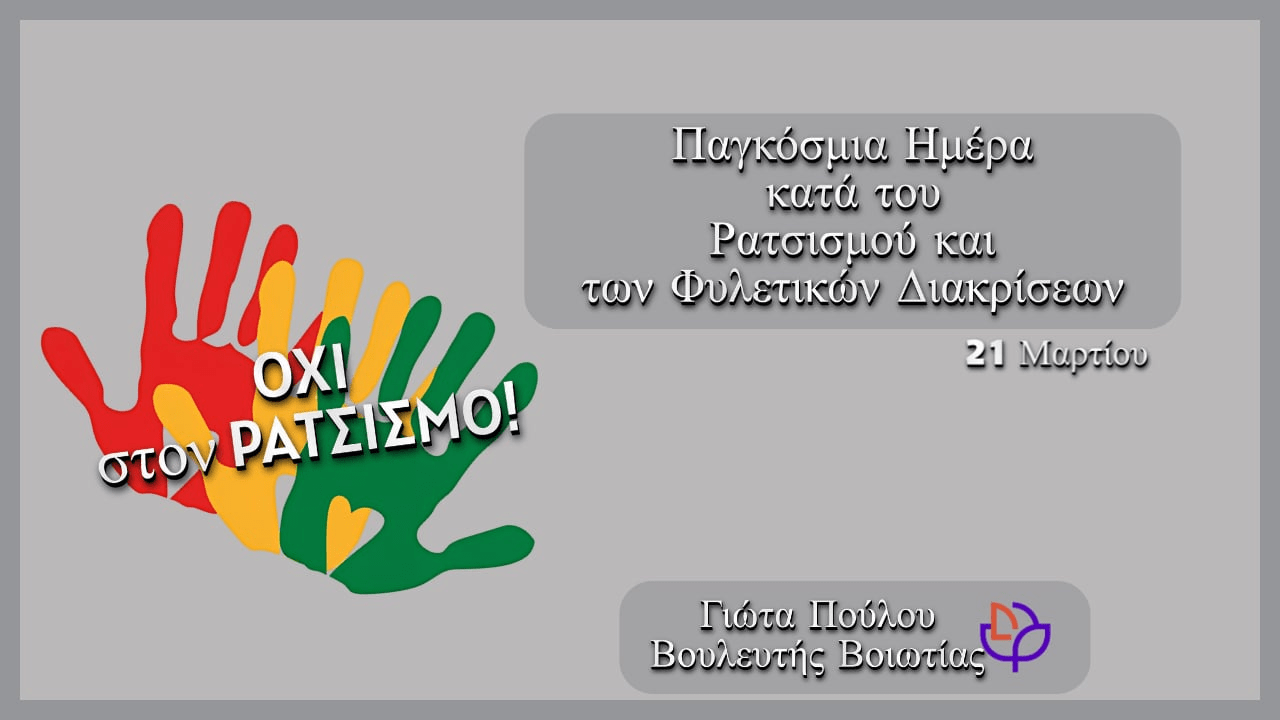 Μήνυμα της Γιώτας Παύλου για την Παγκόσμια Ημέρα κατά του ρατσισμού και των φυλετικών διακρίσεων
