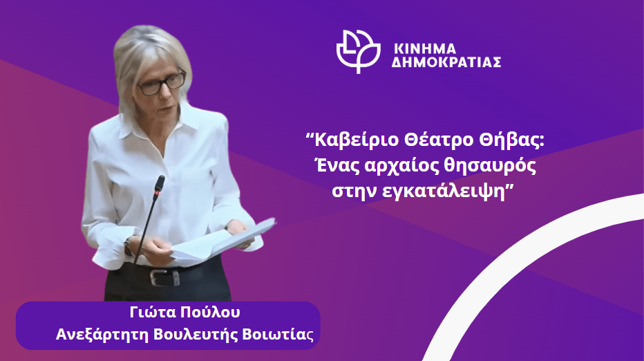 Η κατάσταση του Καβείριου Θεάτρου Θήβας, ενός από τα σημαντικότερα αρχαία μνημεία της Βοιωτίας, προκαλεί οργή και απογοήτευση. Το θέατρο, συνδεδεμένο με τα Καβείρια Μυστήρια και την πλούσια ιστορία της περιοχής, παραμένει ερειπωμένο, χωρίς προστασία, συντήρηση ή ανάδειξη. Η έλλειψη χρηματοδότησης, στρατηγικού σχεδιασμού και συνεργασίας με την τοπική αυτοδιοίκηση και επιστημονικούς φορείς αφήνει το μνημείο εκτεθειμένο στις φθορές του χρόνου, στερώντας από τη Θήβα μια μοναδική ευκαιρία πολιτιστικής και τουριστικής ανάπτυξης, δήλωσε η Βουλευτής Γιώτα Πούλου και συνέχισε