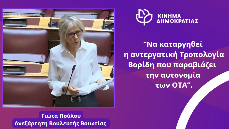 | ΘΕΜΑ: | «Αντεργατική πολιτική της κυβέρνησης και παραβίαση τηςαυτονομίας των ΟΤΑ με την επιμονή στη διατήρηση της τροπολογίας Βορίδη» |