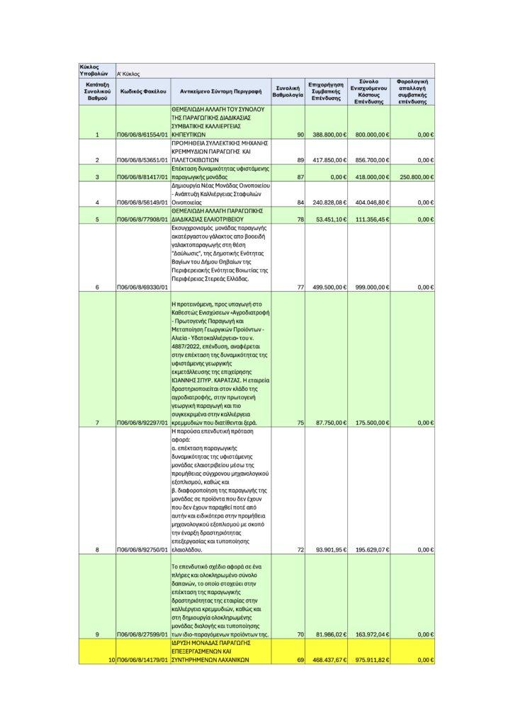 Οι επενδύσεις εντάχθηκαν με βάση τον Οριστικό Πίνακα Κατάταξης της Γενικής Γραμματείας Ιδιωτικών Επενδύσεων, που αναρτήθηκε στην ηλεκτρονική πλατφόρμα του Υπουργείου Ανάπτυξης. Με την υπογραφή του Περιφερειάρχη Φάνη Σπανού, δρομολογείται άμεσα η έκδοση των ατομικών διοικητικών πράξεων για κάθε έργο.