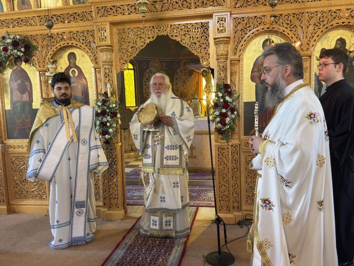 Το απόγευμα, ο Σεβασμιώτατος μετέβη στο Μετόχι της Ιεράς Μονής Οσίου Λουκά – τον ιστορικό Ναό του Αγίου Γεωργίου στη Λάκκα, που χτίστηκε πάνω σε παλαιοχριστιανική βασιλική με σωζόμενα γλυπτά και ψηφιδωτό. Εκεί, τέλεσε τον Πανηγυρικό Εσπερινό για τη μνήμη της Αγίας Ειρήνης Χρυσοβαλάντου, συνοδευόμενος από τον Καθηγούμενο της Μονής π. Σεραφείμ Παυλίδη και τους Πατέρες της Αδελφότητας, καθώς και από εφημέριους της ευρύτερης περιοχής.