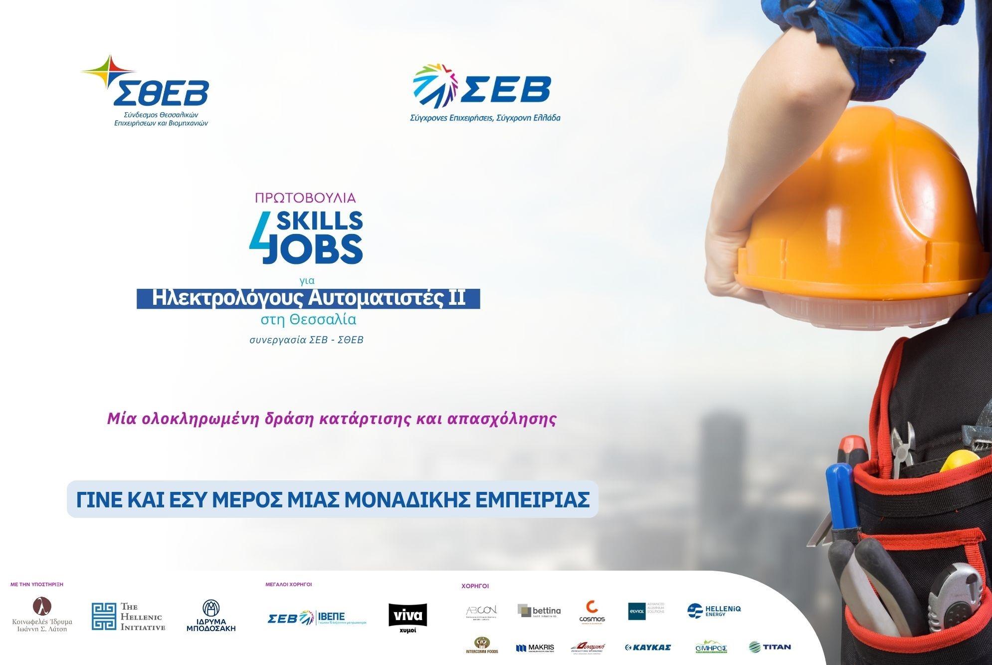 Ο Σύνδεσμος Θεσσαλικών Επιχειρήσεων και Βιομηχανιών (ΣΘΕΒ), σε συνεργασία με τον ΣΕΒ Σύνδεσμο Επιχειρήσεων και Βιομηχανιών, συνεχίζει για τρίτη χρονιά την επιτυχημένη πρωτοβουλία Skills4Jobs, η οποία συνδέει την εκπαίδευση και κατάρτιση με την απασχόληση, στηρίζοντας έμπρακτα την τοπική βιομηχανία και τους νέους της Θεσσαλίας.