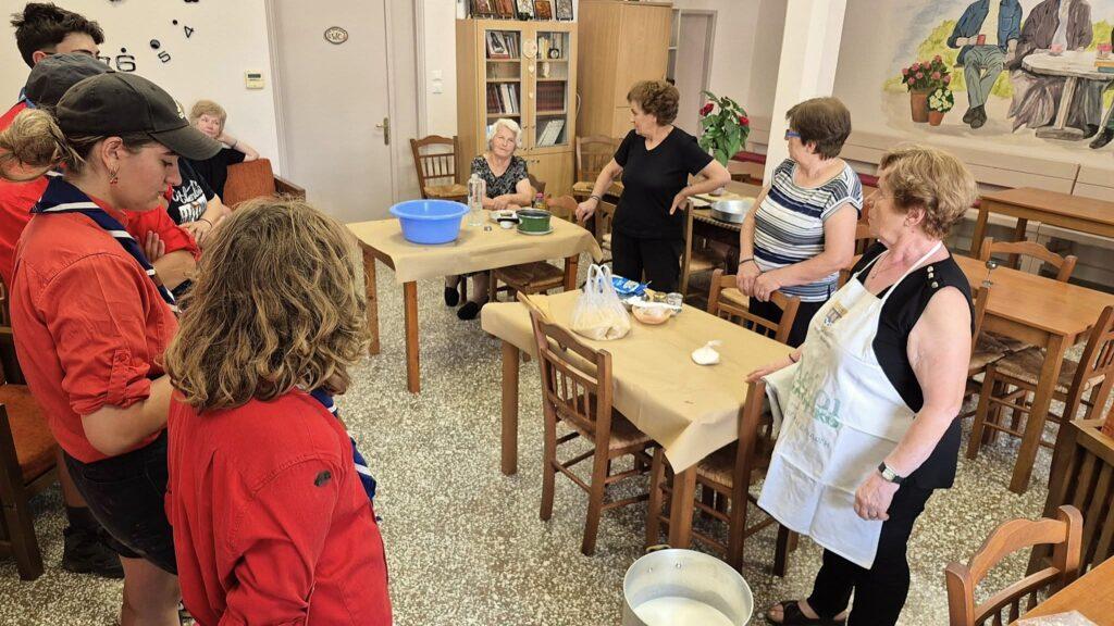 Ξεχωριστή στιγμή της επίσκεψης αποτέλεσε η θερμή υποδοχή των ομάδων από τις ακούραστες και πάντα φιλόξενες γυναίκες της Λέσχης Φιλίας Αμφίκλειας. Εκείνες, με αγάπη και μεράκι, παρουσίασαν παραδοσιακές συνταγές όπως το κουσμάρι, ο τραχανάς, η πίτα και το ζυμωτό ψωμί. Ιδιαίτερη σημασία δόθηκε στην προετοιμασία του προζυμιού, όπως αρμόζει στην ημέρα της εορτής του Τιμίου Σταυρού, που παραδοσιακά σηματοδοτεί την έναρξη της περιόδου ζυμώματος.