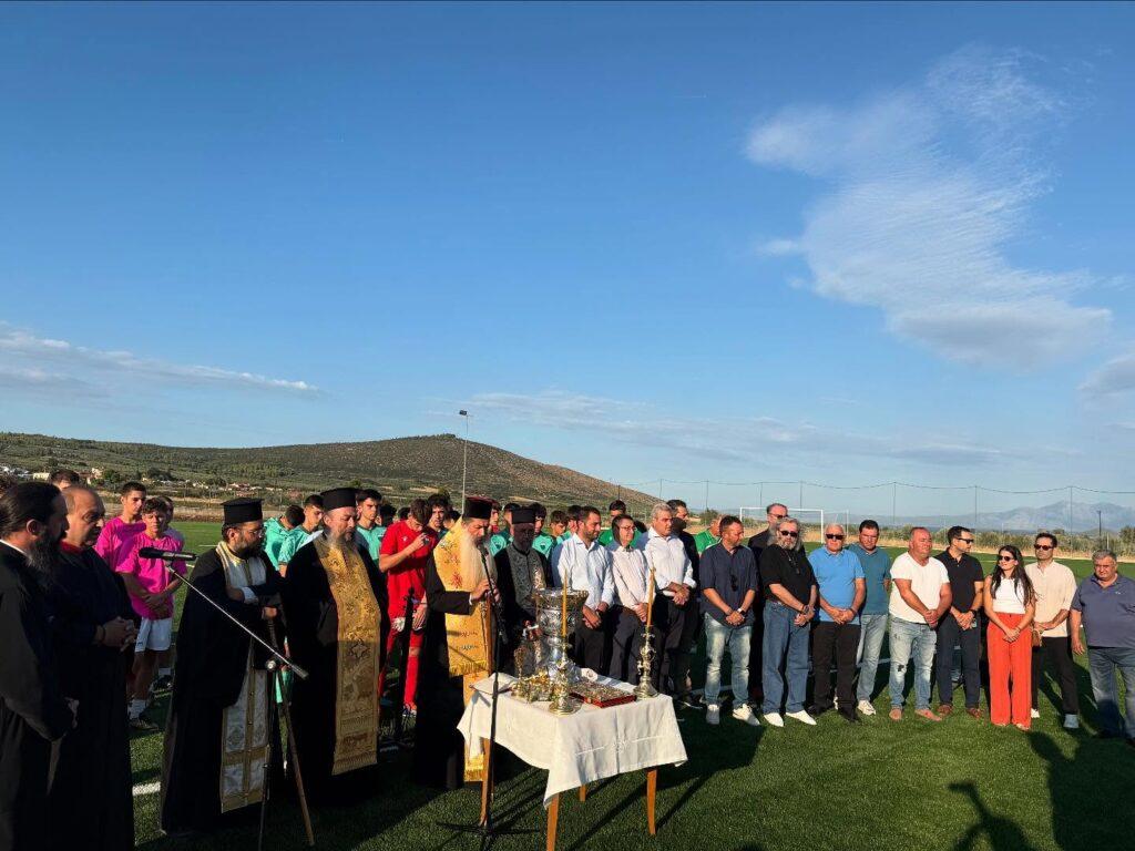 Τον Αγιασμό τέλεσε ο Σεβασμιώτατος Μητροπολίτης Φθιώτιδας κ.κ. Συμεών. Παρόντες ήταν ο Αντιπεριφερειάρχης Π.Ε. Φθιώτιδας Ηλίας Σανίδας, ο Εντεταλμένος Περιφερειακός Σύμβουλος Αθλητισμού Ηλίας Καλτσάς, ο Περιφερειακός Σύμβουλος Φθιώτιδας Χρήστος Ταξίδης, ο Πρόεδρος του Δ.Σ. του Δήμου Λοκρών Δημήτριος Νικολάου, οι Αντιδήμαρχοι του Δήμου Λοκρών Μιχάλης Παπανικολάου, Μαρία Τζανακάκη, Βασίλης Κυριαζής, Χρήστος Καλλής, οι Δημοτικοί Σύμβουλοι Αθανάσιος Αγγελής και Κωνσταντίνος Σούλιας, η Γενική Γραμματέας του Δήμου Λοκρών Σαμπρίνα Τσάκωνα Τβισς, οι Πρόεδροι Τοπικών Κοινοτήτων Ιωάννης Νιαβής (Αταλάντης), Οδυσσέας Γλουστιάνος (Μεγαπλατάνου), Αναστάσιος Μαζιώτης (Λιβανατών), Δημήτρης Κυριαζής (Κυρτώνης), ο Πρόεδρος της Ε.Π.Σ. Φθιώτιδας Μιχάλης Κορδολέμης, ο Αντιπρόεδρος της Ε.Π.Σ. Φθιώτιδας και Πρόεδρος του Δ.Σ. Δήμου Στυλίδας Δημήτριος Κατσούρας, μέλη του Δ.Σ. της Ε.Π.Σ. Φθιώτιδας, ο Πρόεδρος των Υποδομών της Π.Α.Ε. Λεβαδειακός Αθανάσιος Σωτηρόπουλος, ο Πρόεδρος της Α.Π.Ο. Αταλάντης Κωνσταντίνος Τσακανίκας, μέλη της ΕΠ.ΟΜ.Ε.Α., εκπρόσωποι των αθλητικών σωματείων της Ε.Π.Σ. Φθιώτιδας, εκπρόσωποι της Τεχνικής Υπηρεσίας της Περιφέρειας Στερεάς Ελλάδας και εκπρόσωπος της αναδόχου εταιρείας του έργου.