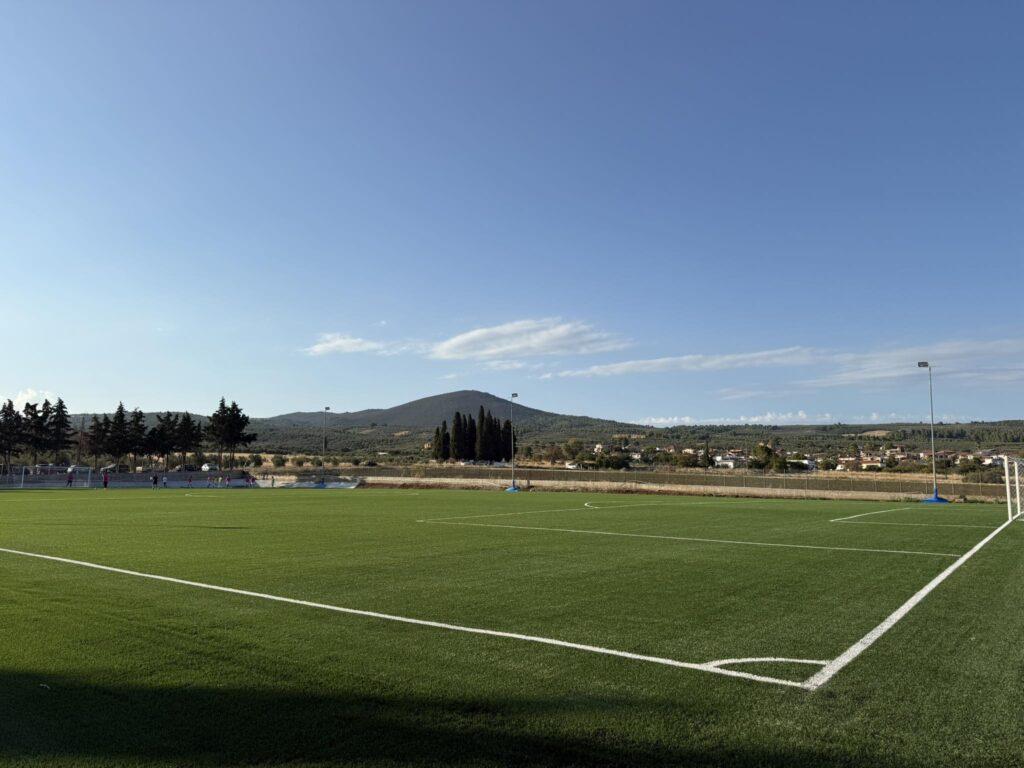 Φυσικό αντικείμενο του έργου ήταν οι εργασίες εξυγίανσης του εδάφους και κατασκευής υπόβασης του συνθετικού χλοοτάπητα, η εγκατάσταση αρδευτικού δικτύου, όπως και η κατασκευή συστήματος αποστράγγισης του γηπέδου ποδοσφαίρου. Ο νέος χλοοτάπητας που τοποθετήθηκε πληροί όλες τις προδιαγραφές της “FIFA”.