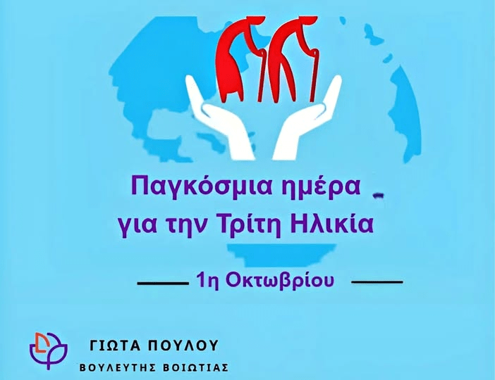 Η 1η Οκτωβρίου, Παγκόσμια Ημέρα Τρίτης Ηλικίας, θα έπρεπε να αποτελεί ημέρα τιμής, ευγνωμοσύνης και αναγνώρισης προς τους ανθρώπους που συνέβαλαν με τον κόπο μιας ζωής στην πρόοδο της κοινωνίας μας.