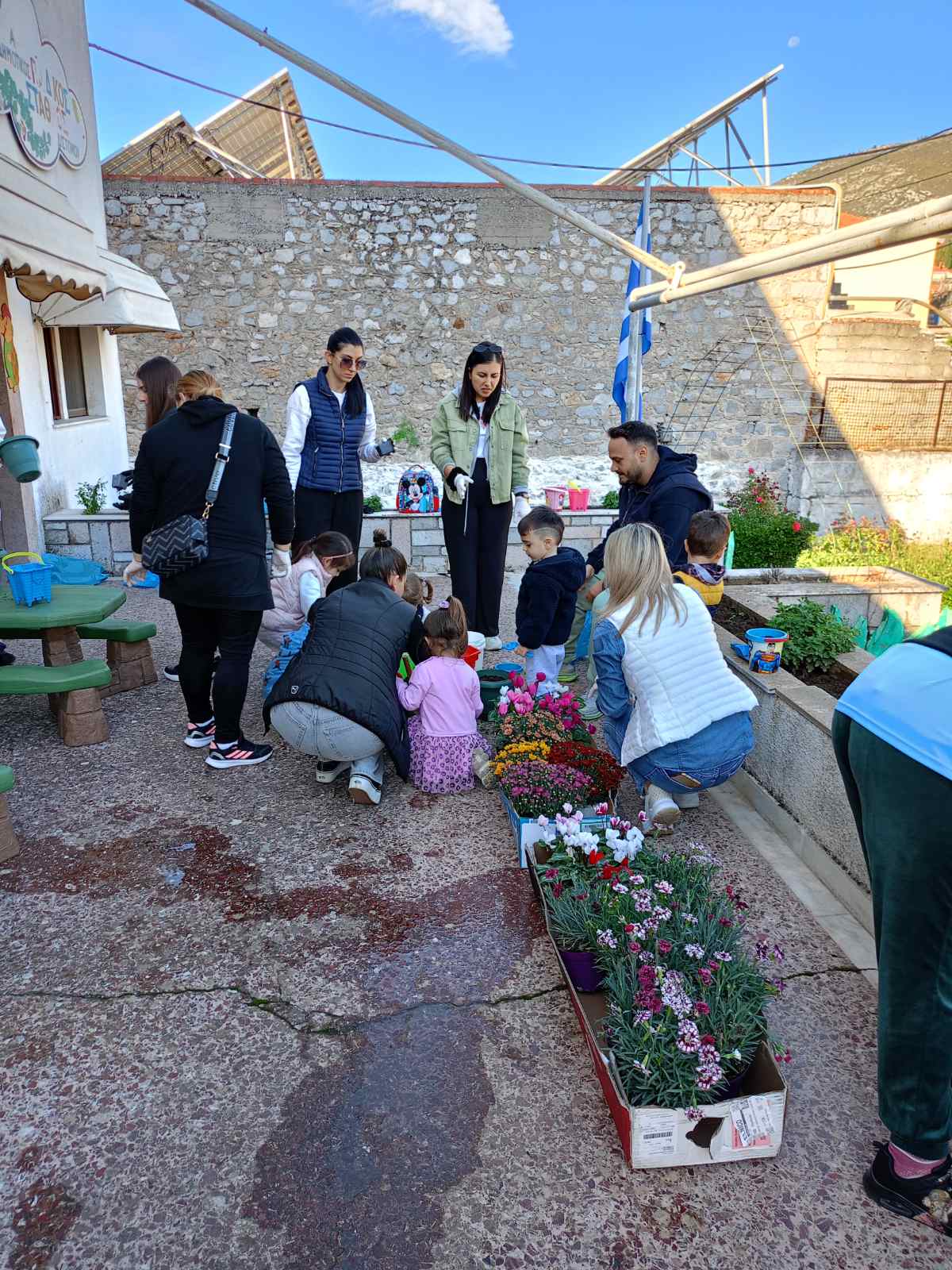 Με την καθοδήγηση των νηπιαγωγών τους, οι μικροί μαθητές πήραν τα φτυαράκια και τα ποτιστήρια τους και ανέλαβαν δράση στην αυλή της πρώην «Βίλας Μπάρλου», όπου στεγάζεται εδώ και χρόνια ο Σταθμός. Πριν αρχίσει η φύτευση, τα παιδιά άκουσαν με απλά λόγια για τη σημασία των φυτών, τη χρησιμότητά τους στη φύση και στη ζωή μας, αλλά και την ανάγκη να τα φροντίζουμε και να τα προστατεύουμε.