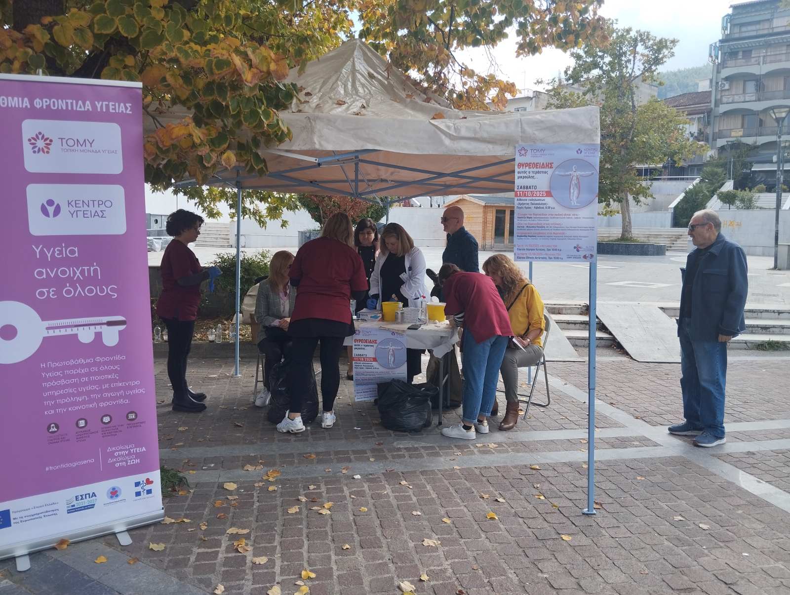 Η δράση ενημέρωσης πλαισιώθηκε από δωρεάν μετρήσεις θυρεοειδούς (TSH), που πραγματοποιήθηκαν την Τρίτη 14 και την Τετάρτη 15 Οκτωβρίου στις πλατείες Λάμπρου Κατσώνη και Εθνικής Αντίστασης, με μεγάλη συμμετοχή πολιτών.