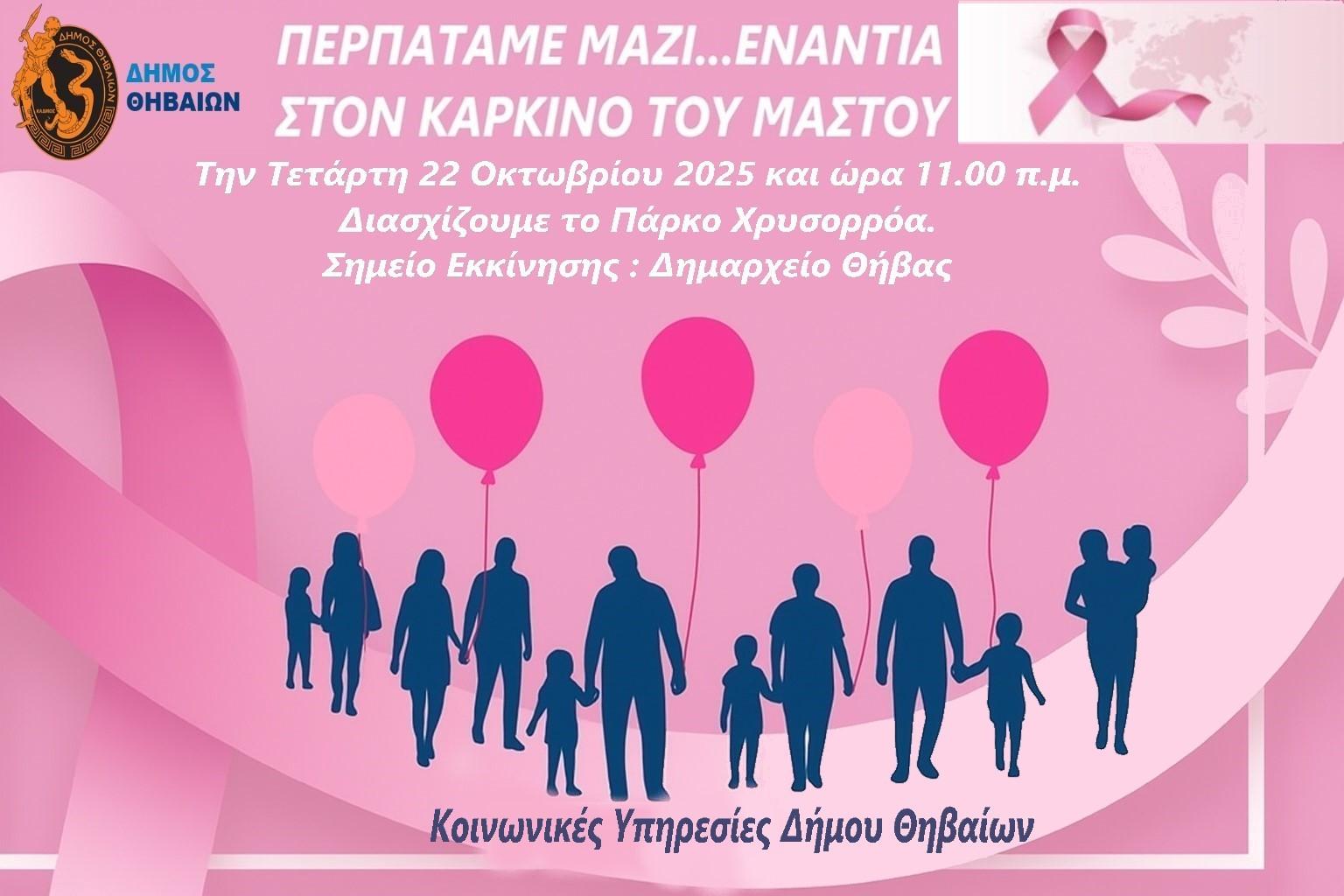 Η δράση εντάσσεται στο πλαίσιο των ενεργειών ευαισθητοποίησης που υλοποιεί ο Δήμος Θηβαίων για την ενημέρωση του κοινού σχετικά με την έγκαιρη διάγνωση και αντιμετώπιση του καρκίνου του μαστού, ενός θέματος που αγγίζει χιλιάδες γυναίκες και οικογένειες στη χώρα μας.