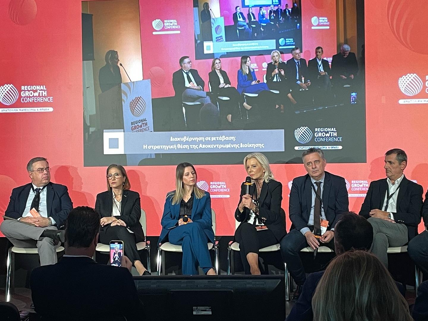 Στο 2ο Regional Growth Conference Ανατολικής Μακεδονίας & Θράκης, που πραγματοποιήθηκε στην Κομοτηνή, συμμετείχε ως ομιλήτρια η Γενική Γραμματέας της Αποκεντρωμένης Διοίκησης Θεσσαλίας – Στερεάς Ελλάδας, κα Ρένα Καραλαριώτου.