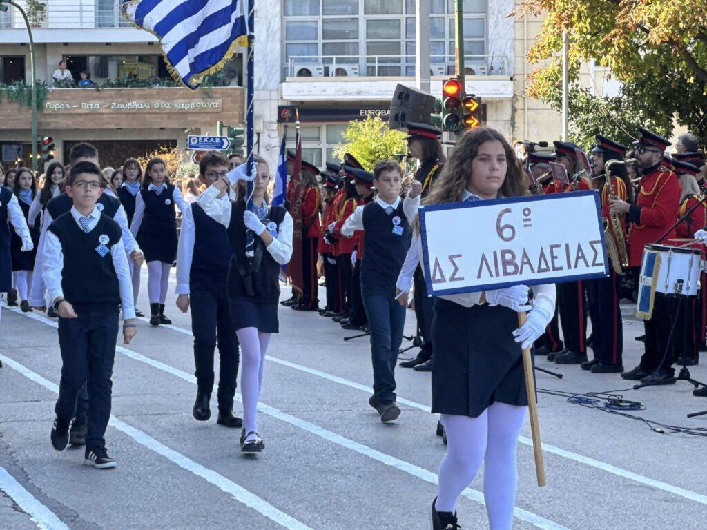 Με σύμμαχο τον ηλιόλουστο καιρό και με διάχυτο το κλίμα εθνικής υπερηφάνειας, οι Λιβαδείτες βγήκαν στους δρόμους για να παρακολουθήσουν τη μαθητική παρέλαση της 28ης Οκτωβρίου, τιμώντας το ηρωικό «Όχι» του 1940.