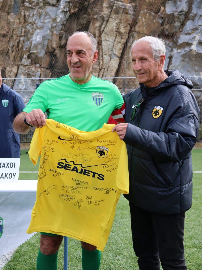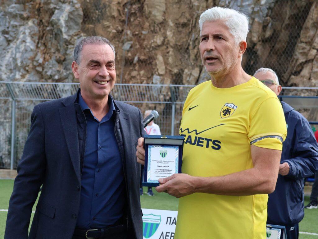 Ο δήμαρχος Λεβαδέων Δημήτρης Καραμάνης, ο οποίος παρακολούθησε τον αγώνα, τόνισε τη σημασία της παρουσίας μεγάλων ονομάτων στο γήπεδο Ζαγαρά και αναφέρθηκε στη φετινή πορεία του Λεβαδειακού στη Super League. Ξεχωριστή στιγμή αποτέλεσε η προσφορά συλλεκτικής φανέλας της Α.Ε.Κ. στο Μουσείο του Λεβαδειακού.