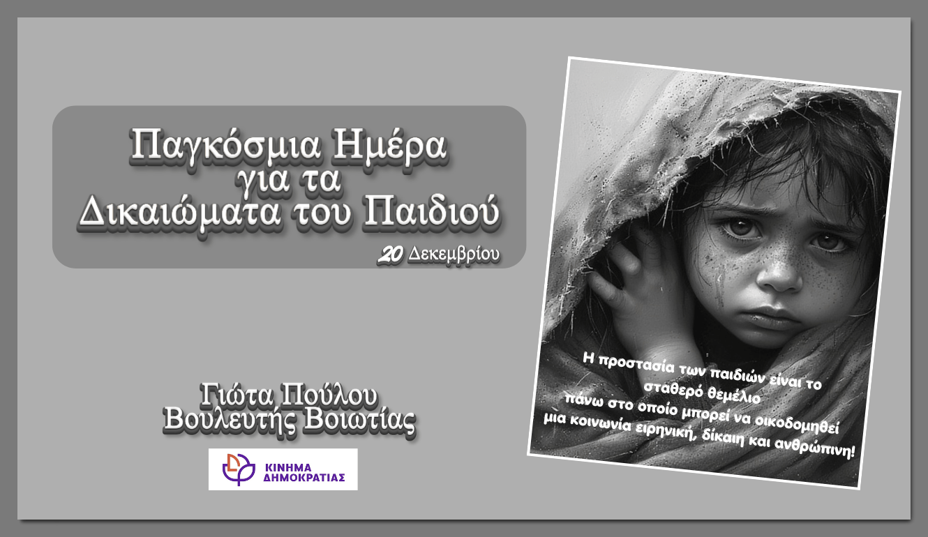 Η προστασία των παιδιών αποτελεί συλλογική ευθύνη και θεμελιώδη προϋπόθεση για τη διαμόρφωση κοινωνιών που σέβονται τον άνθρωπο και υπηρετούν την ειρήνη.