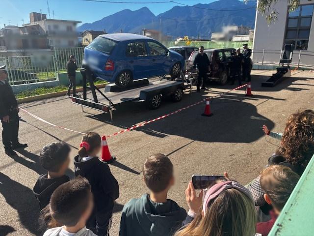 Μαθητές δημοτικού της Λαμίας συμμετείχαν σε εκπαιδευτική δράση οδικής ασφάλειας με προσομοιωτές ανατροπής και σύγκρουσης