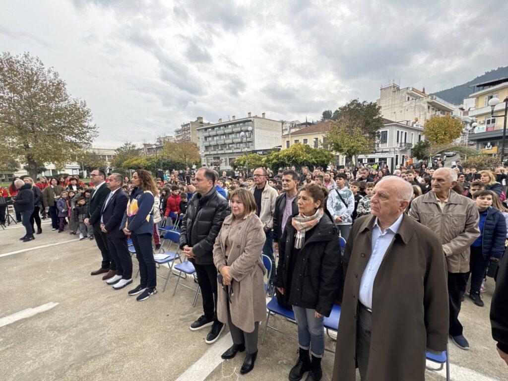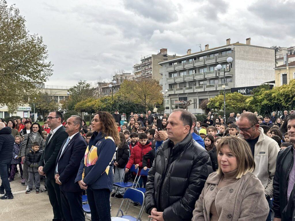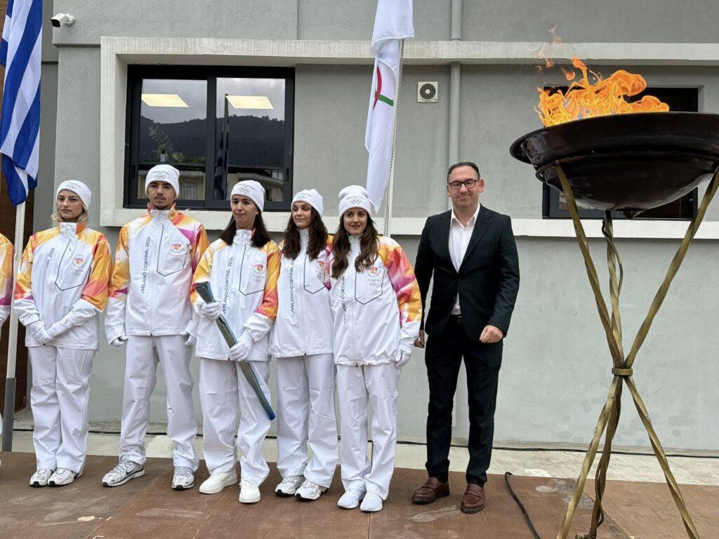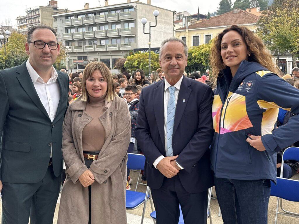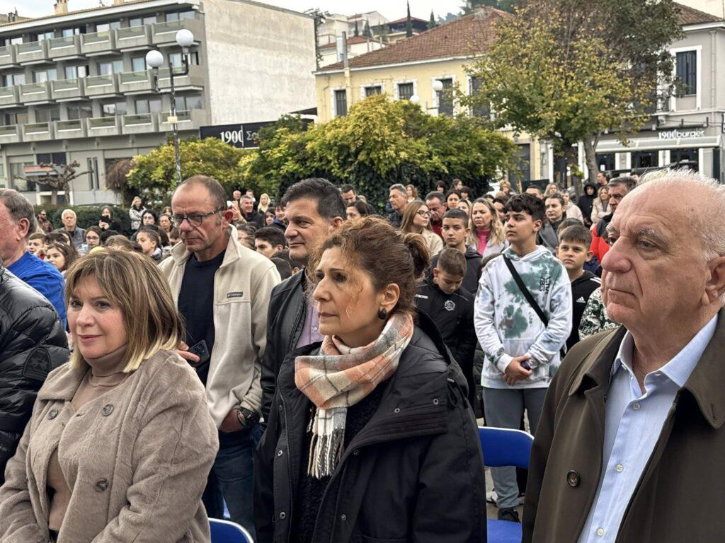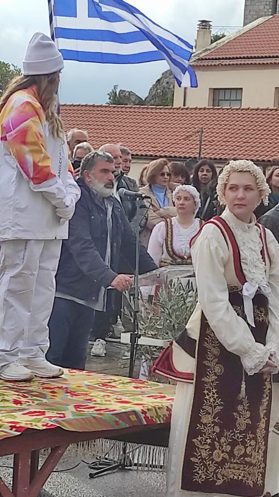 Αθλητές, εκπρόσωποι της τοπικής αυτοδιοίκησης, σχολεία και πολιτιστικοί φορείς γέμισαν την κεντρική πλατεία της πόλης, σε ένα σκηνικό έντονης συγκίνησης, με τη Φλόγα να έχει προηγουμένως περάσει από την Αράχωβα.