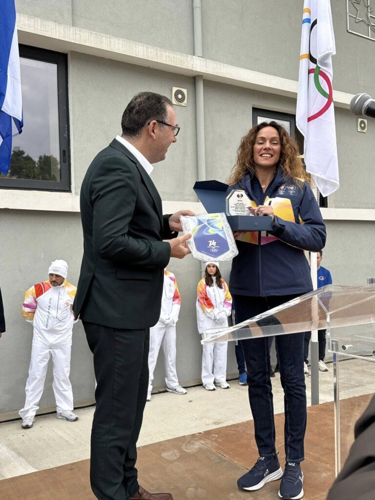 Συγκινητική ήταν και η τοποθέτηση του Προέδρου της Επιτροπής Ολυμπιακής Λαμπαδηδρομίας, κ. Θωμά Τόκα, ο οποίος προσέφερε συμβολικά στον κ. Αγνιάδη ένα αντίγραφο του αγγείου με το οποίο γίνεται η μεταλαμπάδευση της Φλόγας από την Πρωθιέρεια στον πρώτο λαμπαδηδρόμο.