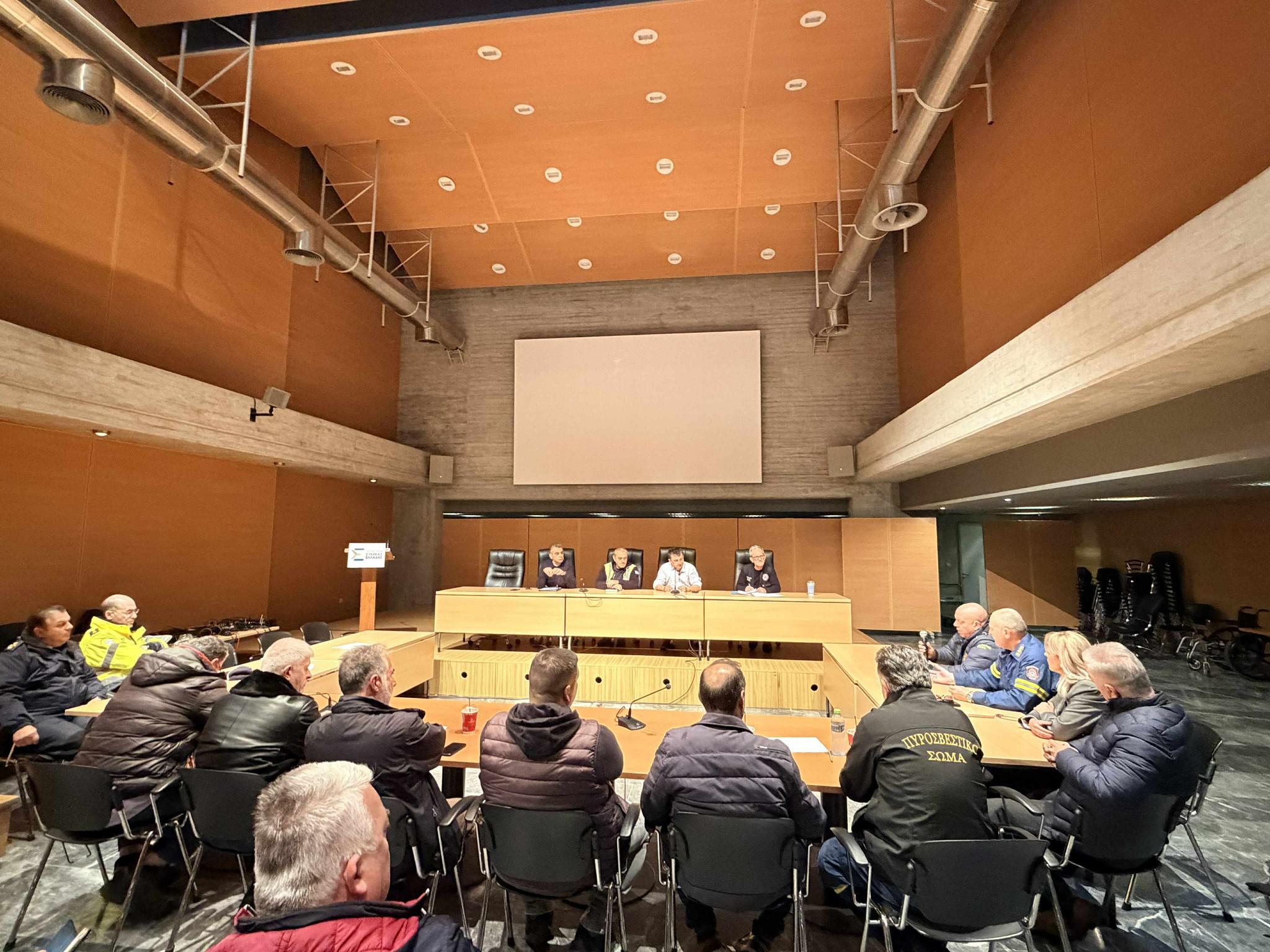 Το πρωί της Πέμπτης συγκλήθηκε εκτάκτως το Συντονιστικό Όργανο Πολιτικής Προστασίας (Π.Ε.Σ.Ο.Π.Π.) στο Διοικητήριο Λιβαδειάς, με συμμετοχή όλων των εμπλεκόμενων υπηρεσιών και φορέων. Στη συνεδρίαση επικαιροποιήθηκαν τα σχέδια δράσης και επιβεβαιώθηκε η άριστη συνεργασία των δυνάμεων, ενόψει των δύσκολων καιρικών συνθηκών που αναμένονται.