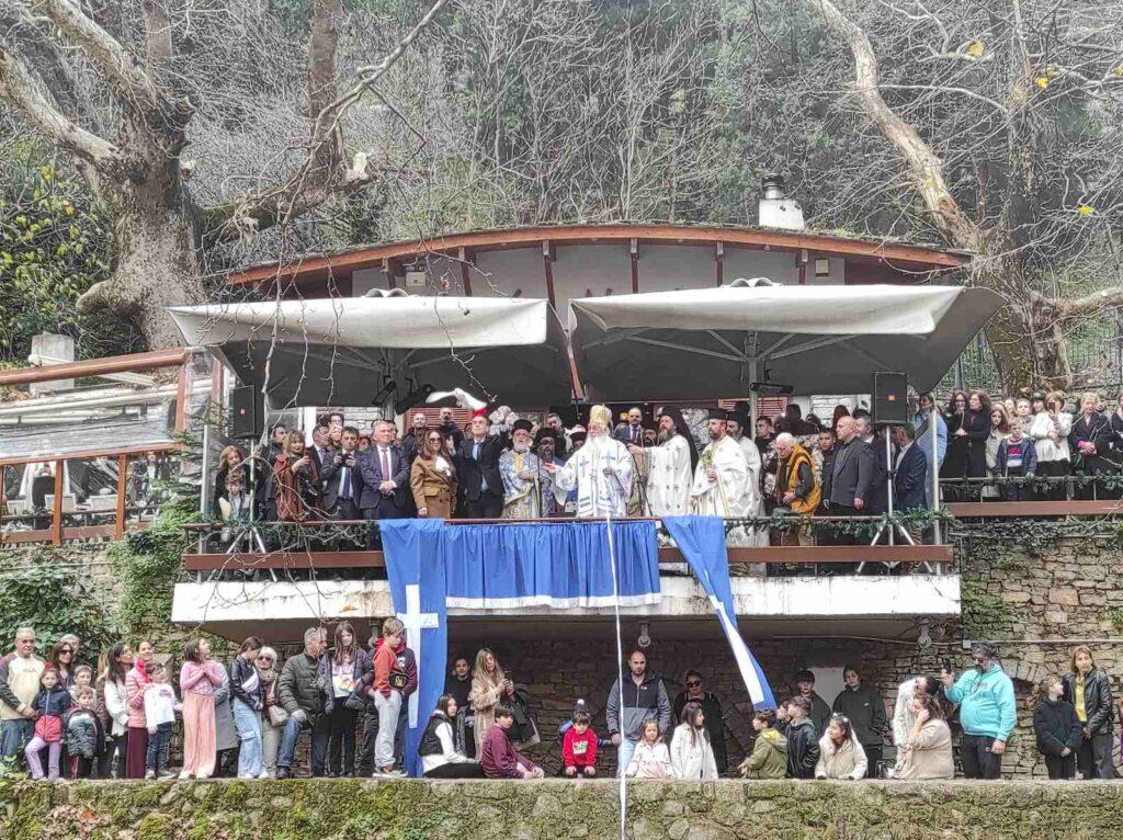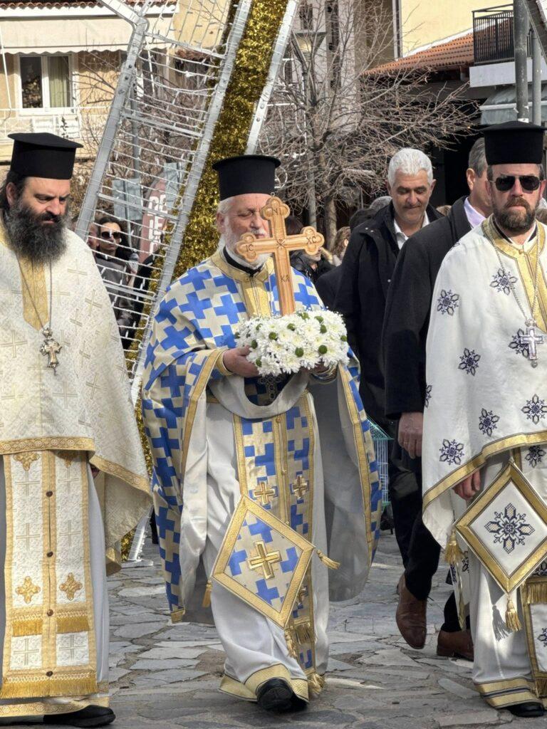 Δύο νεαροί βούτηξαν στα παγωμένα νερά για να ανασύρουν τον Τίμιο Σταυρό, λαμβάνοντας την ευλογία της Εκκλησίας και το θερμό χειροκρότημα των παρευρισκομένων. Από τους επισήμους κυριάρχησαν οι ευχές για Θεία Φώτιση, υγεία και χρόνια πολλά.