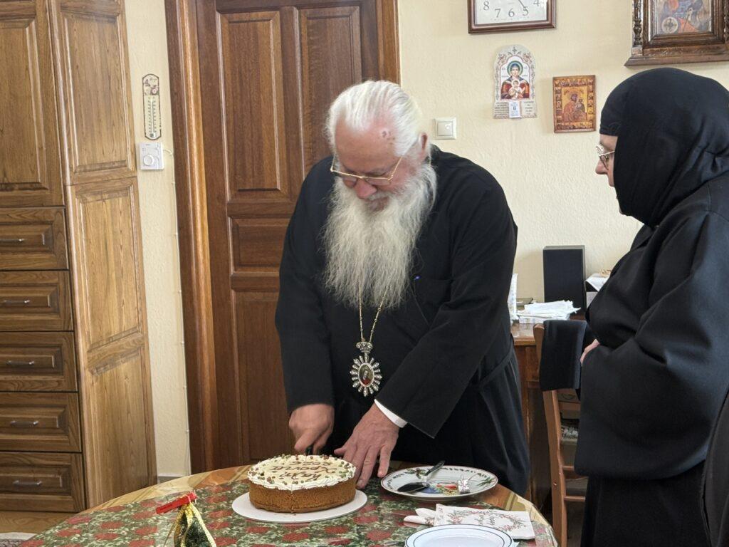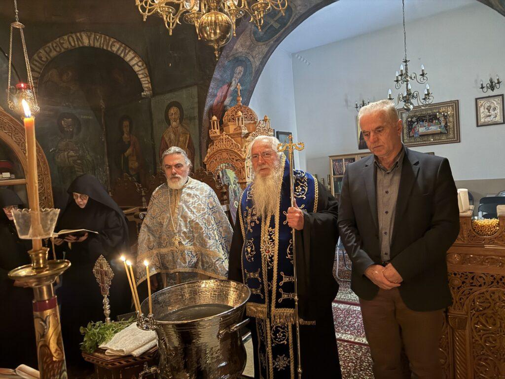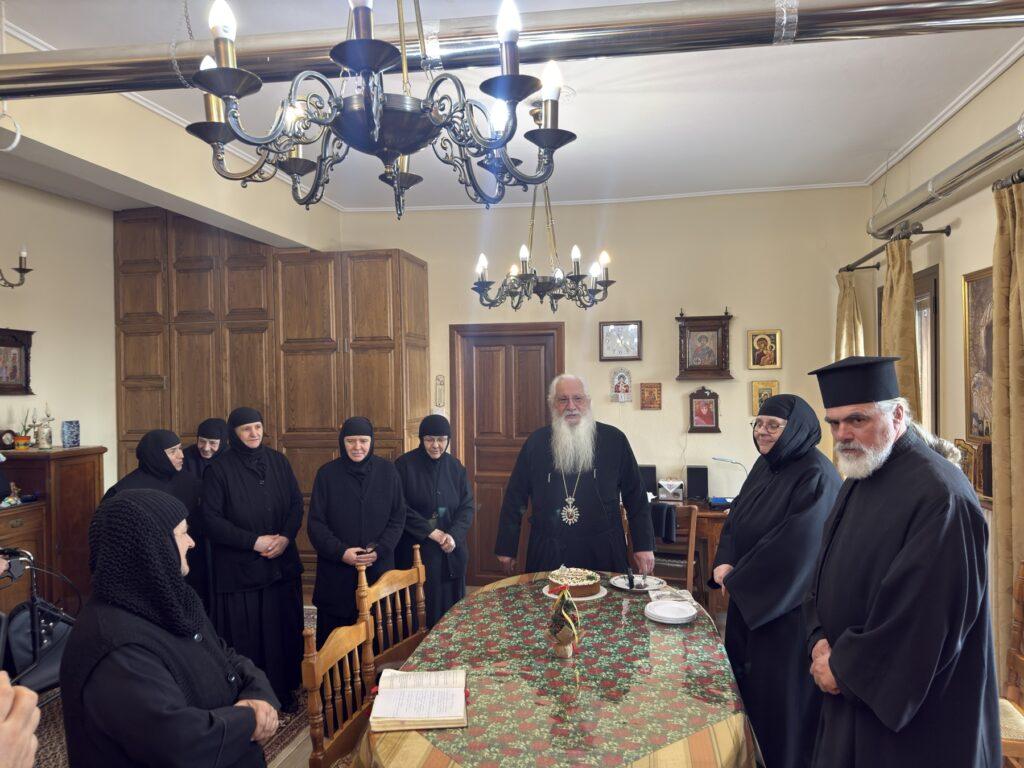 Την ίδια ημέρα, ο Σεβασμιώτατος μετέβη και στην Ιερά Μονή Ευαγγελιστρίας Αλιάρτου, όπου χοροστάτησε στις Μεγάλες Ώρες, τέλεσε τη Θεία Λειτουργία και τον Μεγάλο Αγιασμό. Ακολούθησε η ευλογία της βασιλόπιτας της αδελφότητας, με ευχές προς την Καθηγουμένη Ανθούσα μοναχή και τις μοναχές για το νέο έτος.