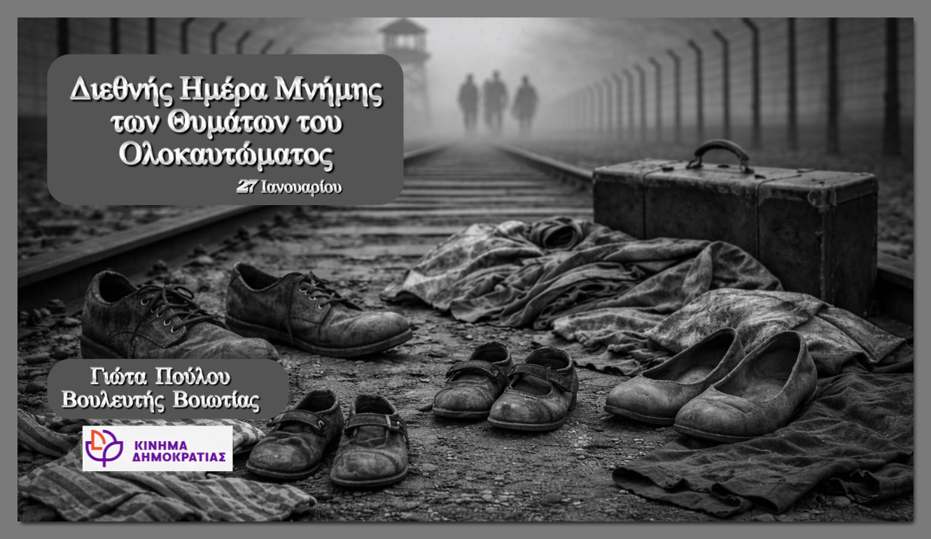 Η 27η Ιανουαρίου, Διεθνής Ημέρα Μνήμης των Θυμάτων του Ολοκαυτώματος, αποτελεί διαρκή υπενθύμιση της οργανωμένης και συστηματικής εξόντωσης εκατομμυρίων ανθρώπων από το ναζιστικό καθεστώς.