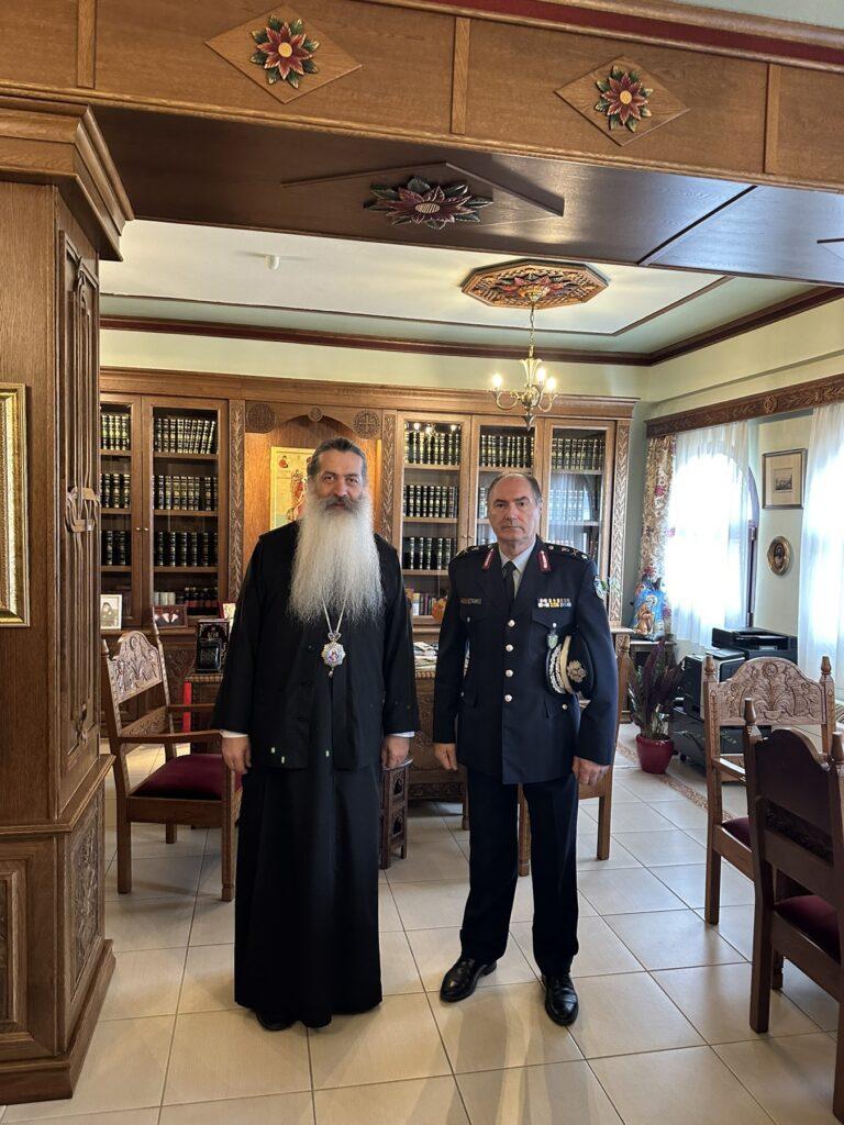 Ο Σεβασμιώτατος υποδέχθηκε εγκάρδια τον κ. Γενικό και του απηύθυνε θερμές ευχές για καλή δύναμη και κάθε επιτυχία στην άσκηση των νέων του καθηκόντων. Κατά τη διάρκεια της συνάντησης, σε ιδιαίτερα θετικό κλίμα, συζητήθηκαν θέματα κοινού ενδιαφέροντος, που άπτονται της κοινωνικής συνοχής, της ασφάλειας και της συνεργασίας των θεσμών προς όφελος της τοπικής κοινωνίας.