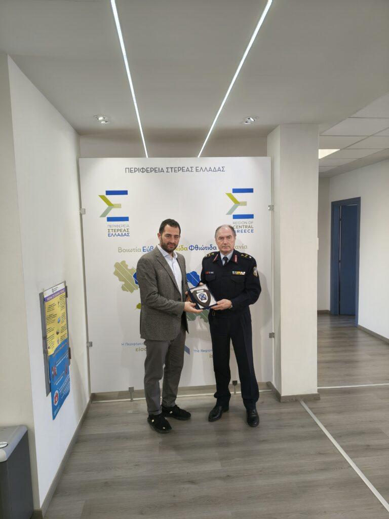 Σε ιδιαίτερα θετικό κλίμα πραγματοποιήθηκε το πρωί της 11ης Φεβρουαρίου 2026 η εθιμοτυπική επίσκεψη του Γενικού Περιφερειακού Αστυνομικού Διευθυντή Στερεάς Ελλάδας, Ταξίαρχου Κωνσταντίνου Πελεκάνου, στον Περιφερειάρχη Στερεάς Ελλάδας κ. Φάνη Σπανό.