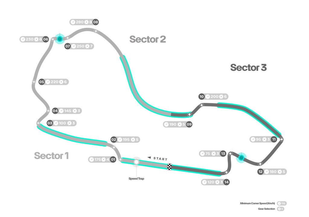 Πρόκειται για μία ιδιαίτερα γρήγορη διαδρομή 14 στροφών, με μέση ωριαία ταχύτητα που αγγίζει τα 235 km/h και αυξημένες απαιτήσεις από τα φρένα των μονοθεσίων. Από τους οδηγούς που θα πάρουν εκκίνηση φέτος, έχουν πανηγυρίσει νίκη στη συγκεκριμένη πίστα οι Λάντο Νόρις (2025), Μαξ Φερστάπεν (2023), Φερνάντο Αλόνσο (2006), Λιούις Χάμιλτον (2008, 2015), Σαρλ Λεκλέρ (2022) και Κάρλος Σάινθ Τζούνιορ (2024). Πολυνίκης στη συγκεκριμένη διαδρομή παραμένει ο Μίχαελ Σουμάχερ, με επιτυχίες το 2000, το 2001, το 2002 και το 2004.
