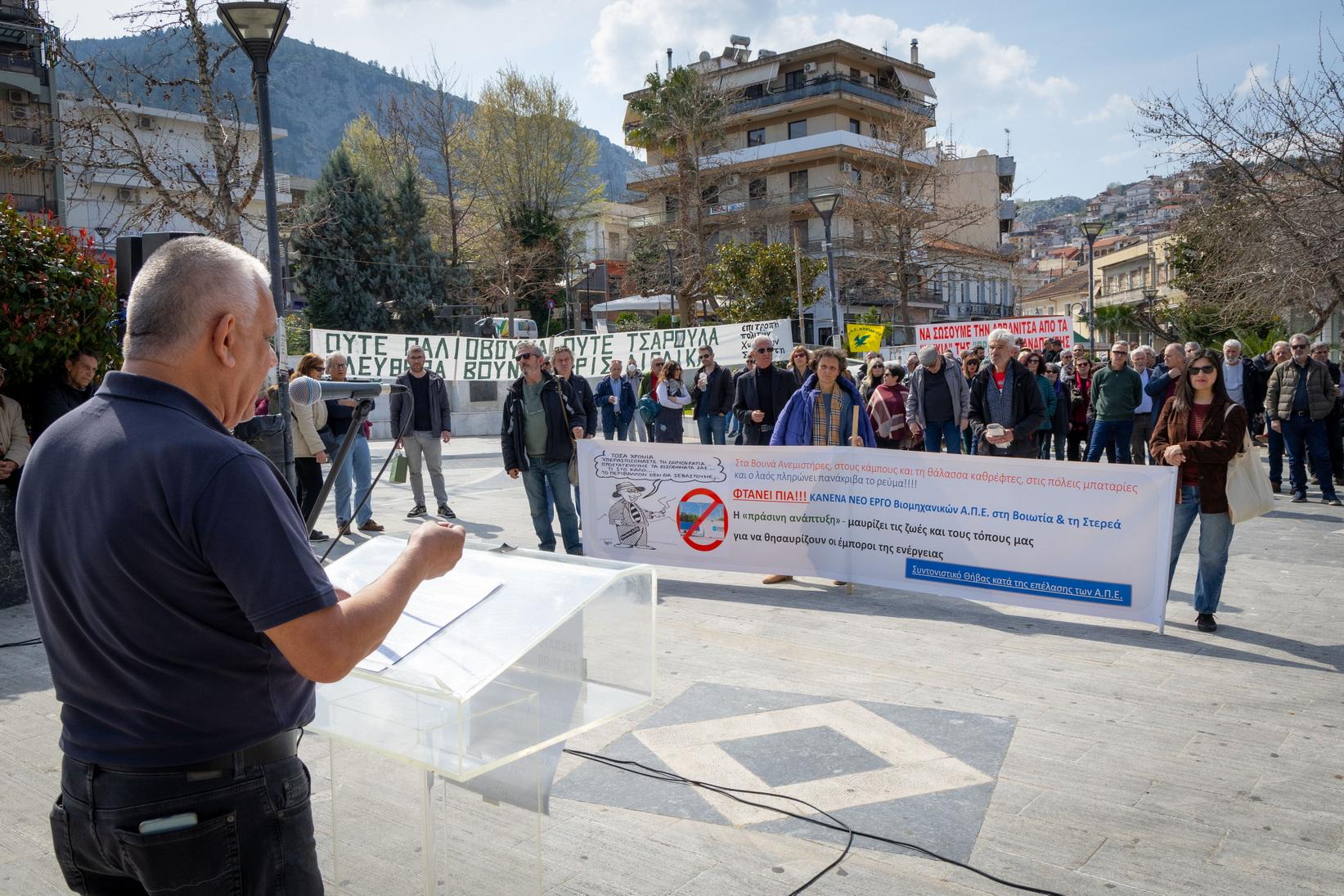 Το Σάββατο 7 Μαρτίου 2026, στην κεντρική πλατεία της Λιβαδειάς, εκατοντάδες πολίτες συμμετείχαν σε συγκέντρωση διαμαρτυρίας που διοργάνωσε ο Συντονισμός των συλλογικοτήτων της Βοιωτίας, με βασικό αίτημα τη διάσωση του οροπεδίου της Αρβανίτσας στον Ελικώνα από την επέλαση της αιολικής βιομηχανίας.