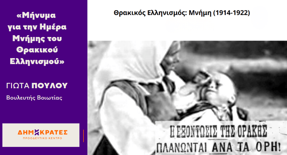 Τιμούμε σήμερα τη μνήμη των θυμάτων της Γενοκτονίας του Θρακικού Ελληνισμού, μιας από τις πιο σκοτεινές και οδυνηρές σελίδες της ιστορίας μας.